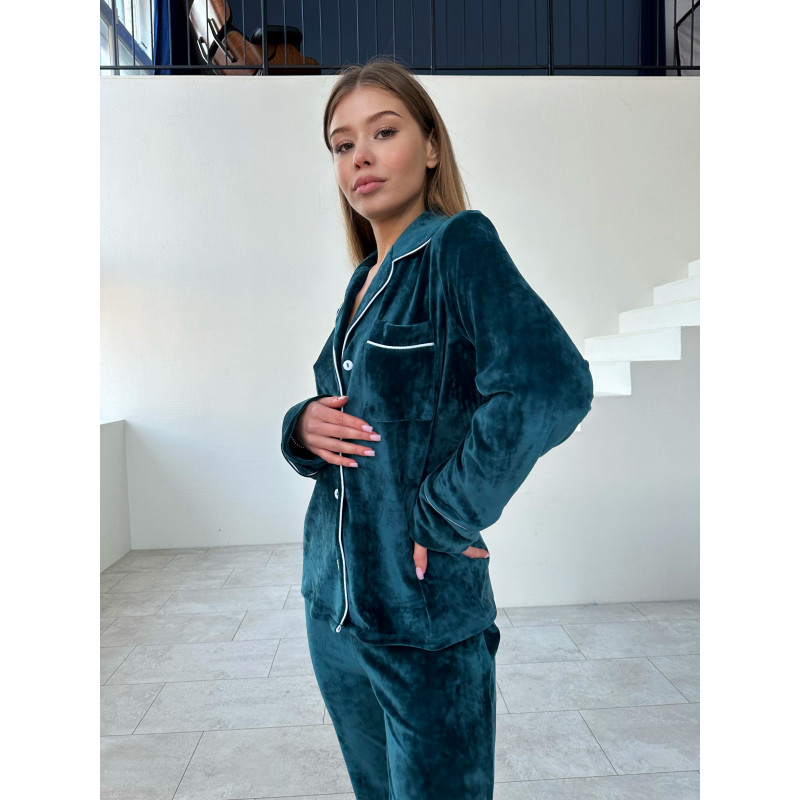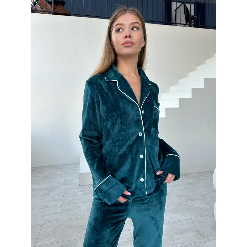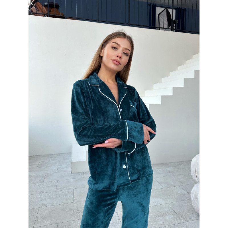 Теги: мод 121 ⠀ Плюшевая пижама с кантом Рубашка + Брюки